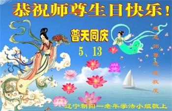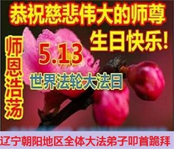 辽宁省朝阳地区全体大法弟子恭祝慈悲伟大的师尊生日快乐!普天同庆5·13世界法轮大法日!