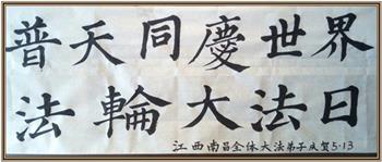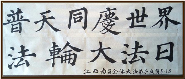 江西省南昌市一学法小组大法弟子恭祝师父生日快乐!普天同庆5.13世界法轮大法日! 江西省南昌市一学法小组敬上 江西省南昌大法弟子祝贺世界法轮大法日!