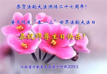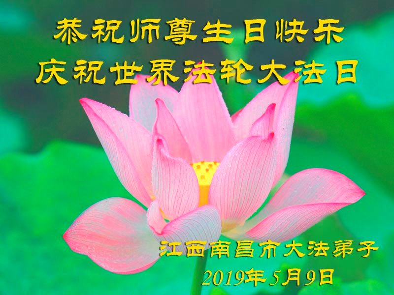 【明慧网二零一九年五月十一日】 江西南昌大法弟子恭祝师尊生日快乐!庆祝世界法轮大法日!