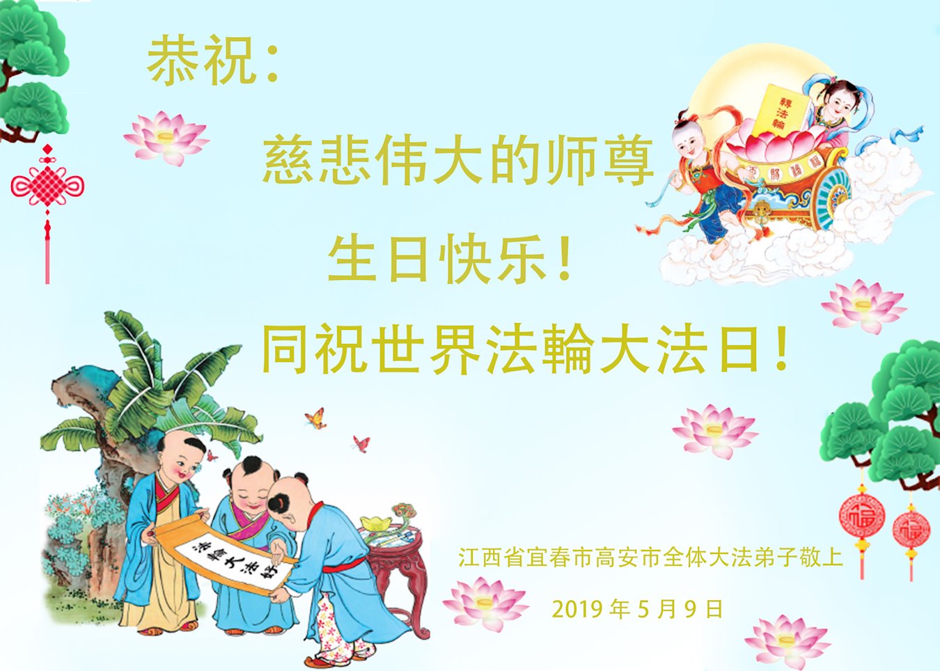 江西省宜春市高安市全体大法弟子恭祝慈悲伟大的师尊生日快乐!恭贺世界法轮大法日!
