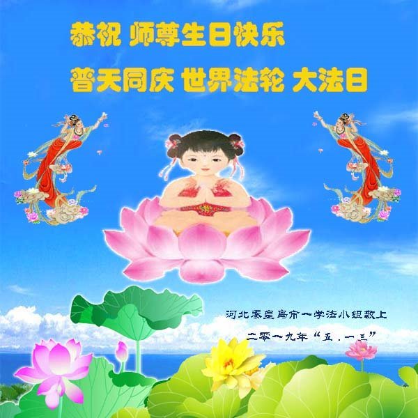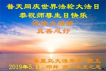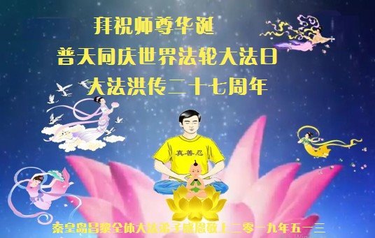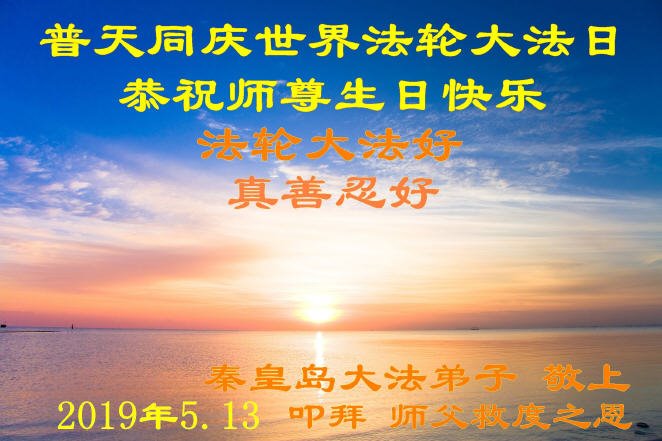 【明慧网二零一九年五月十一日】 河北秦皇岛大法弟子恭祝师尊生日快乐!普天同庆世界法轮大法日!