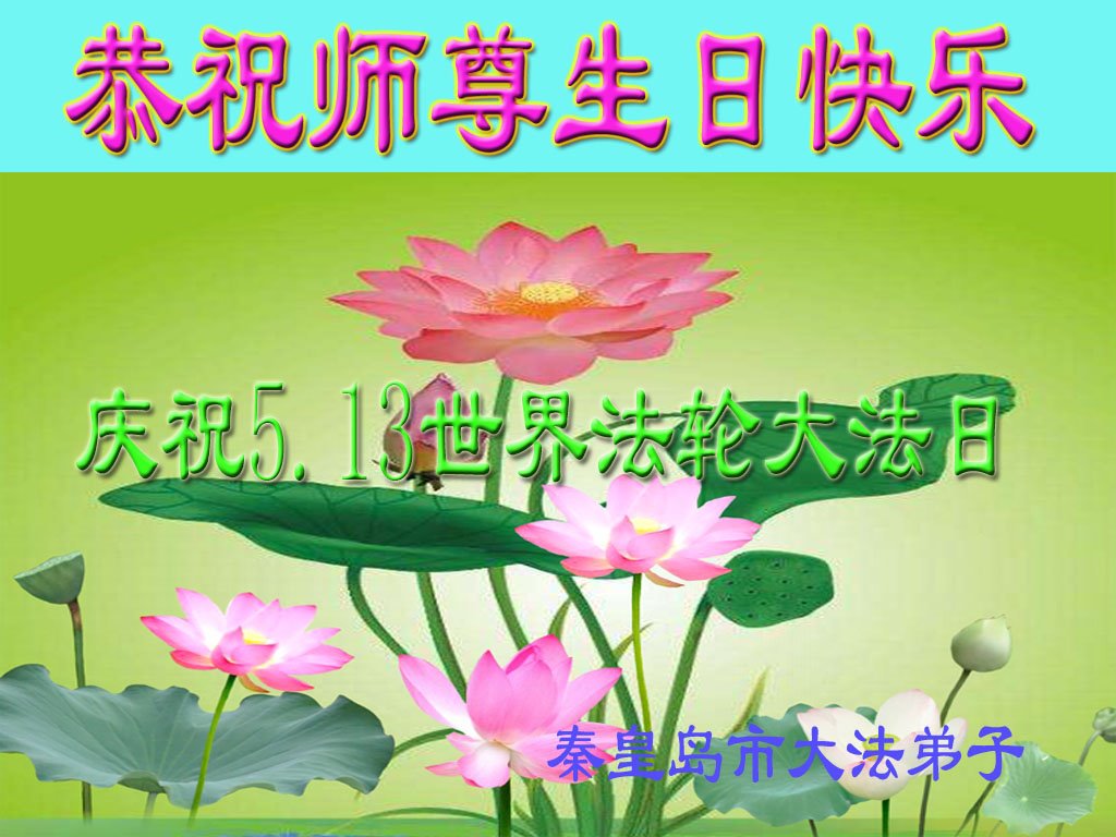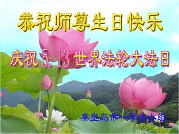 河北秦皇岛市全体大法弟子庆祝513世界法轮大法日! 恭祝师尊华诞! 河北省秦皇岛五位大法弟子恭祝师父华诞暨五一三世界法轮大法日!