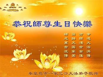 河北省秦皇岛市一家三口大法弟子恭祝慈悲伟大的师尊生日快乐!