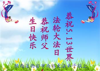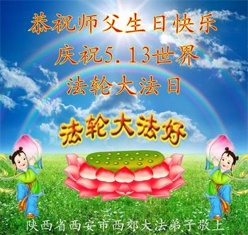 陕西省西安市西郊大法弟子敬上 陕西省西安市西郊大法弟子恭祝5.13世界法轮大法日!恭祝师父生日快乐!