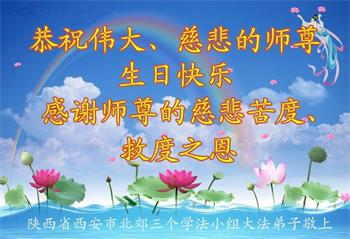 陕西省西安市北郊三个学法小组大法弟子恭祝师父生日快乐!