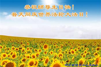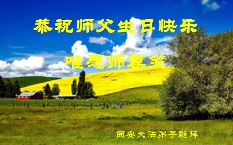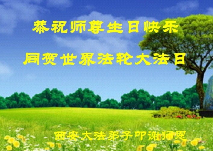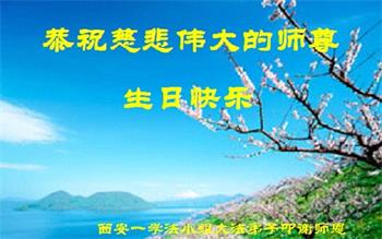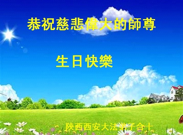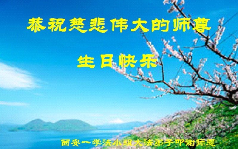 恭祝伟大慈悲的师尊生日快乐! 感谢师尊的慈悲苦度、救度之恩! 陕西省西安市北郊三个学法小组大法弟子敬上 陕西省西安南郊一大法弟子全家恭祝师父生日快乐!