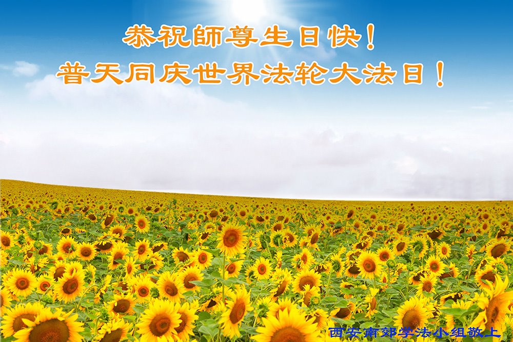 陕西西安鄠邑区全体大法弟子恭贺5.13世界法轮大法日!恭祝师尊生日快乐! 陕西省西安北郊一大法弟子恭祝慈悲伟大的师尊生日快乐!