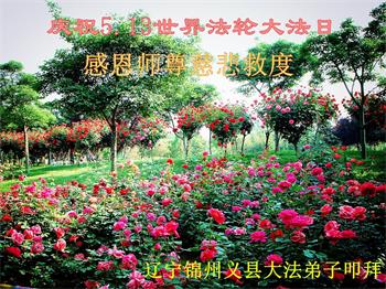 辽宁省锦州市义县一姐妹大法弟子恭贺世界法轮大法日暨师尊华诞!