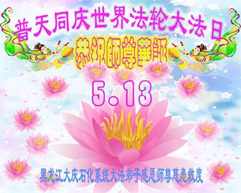 黑龙江大庆石化系统大法弟子普天同庆世界法轮大法日!恭祝师尊华诞!