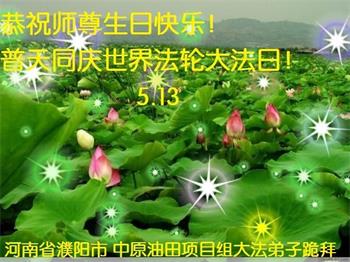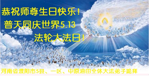 辽宁省个体行业大法弟子祝师父生日快乐!庆祝世界法轮大法日! 河南省濮阳市5县一区、中原油田