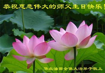 华北油田全体大法弟子恭祝慈悲伟大的师父生日快乐!