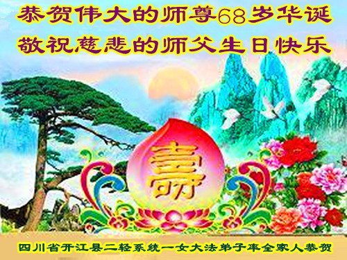 庆贺大法洪传世界二十七周年! 四川省达州市开江县二轻系统一女大法弟子率全家人敬祝慈悲伟大的师父生日快乐!
