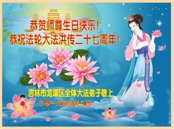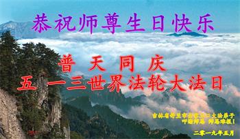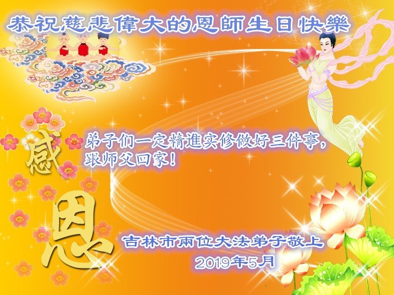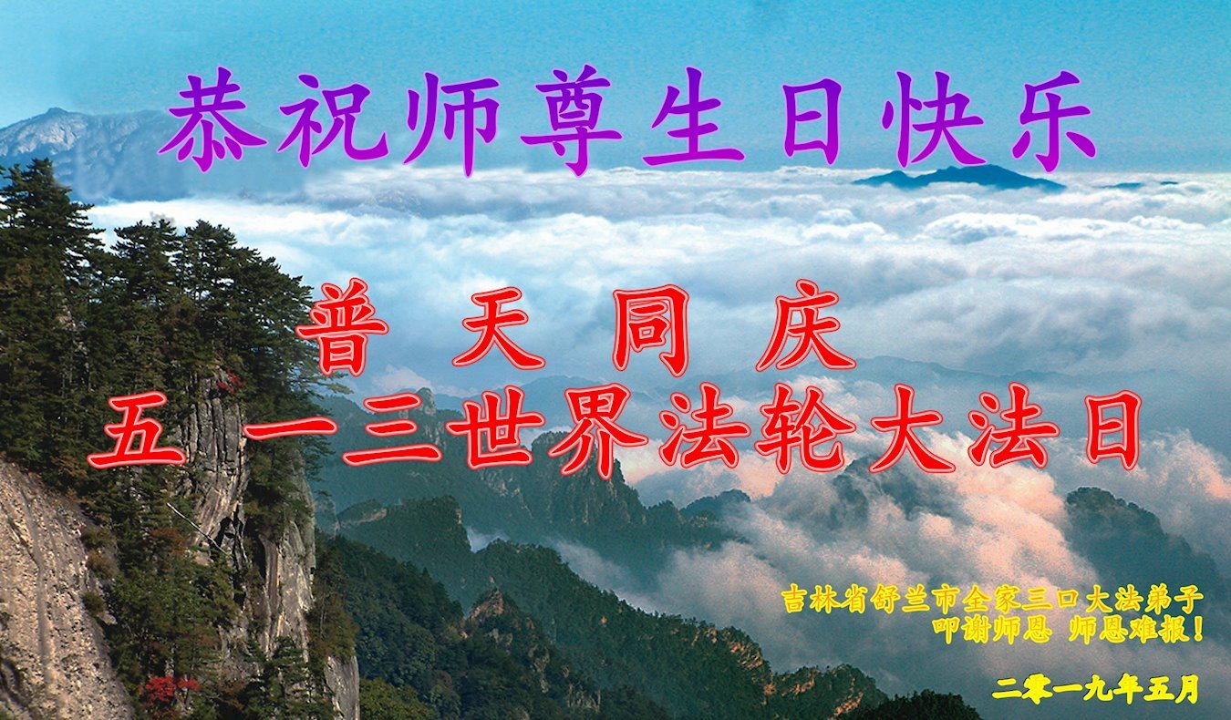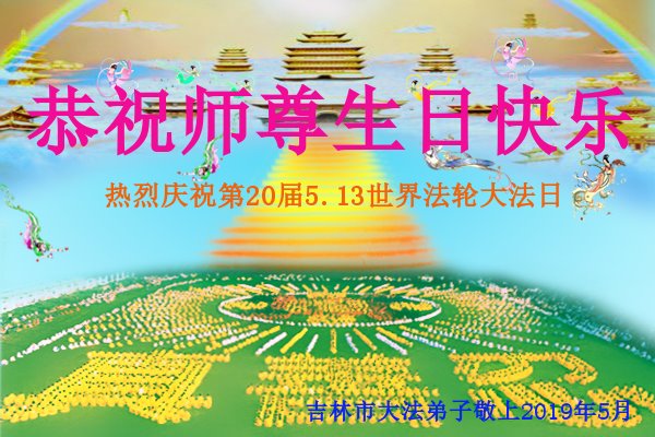【明慧网二零一九年五月十一日】 吉林省吉林市大法弟子恭祝师尊生日快乐!恭贺第20届世界法轮大法日!