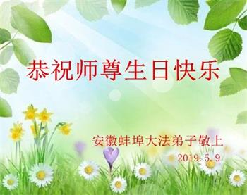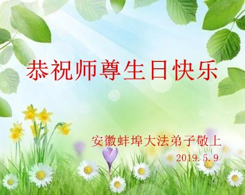 师父您好: 5月13日是您的生日,弟子自从修炼法轮功之后,一直想要按“真、善、忍”做一个好人、更好的人!弟子们做的有太多不足,让您操心了!感谢师父的救度之恩!弟子们想对您说:师父!祝您生日快乐! 安徽蚌埠大法弟子恭祝师尊生日快乐!
