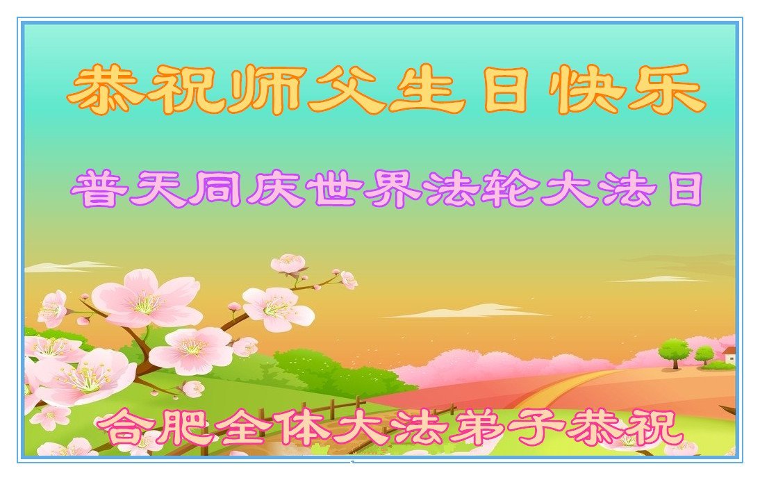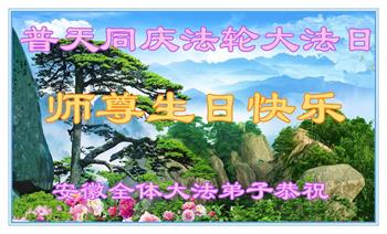 安徽全体大法弟子合十恭祝:师尊生日快乐!普天同庆世界法轮大法日! 安徽省合肥全体大法弟子合十恭祝:师尊生日快乐!