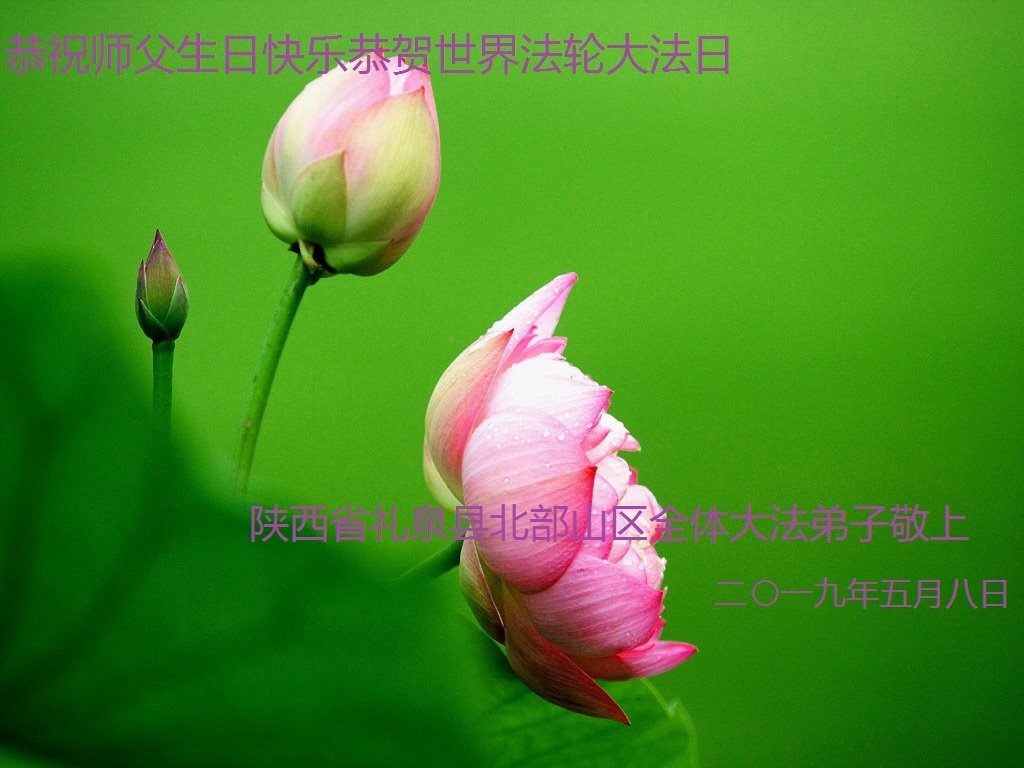 陕西省榆林市全体大法弟子恭祝慈悲伟大的师尊生日快乐!恭贺世界法轮大法日! 陕西省咸阳一家庭大法弟子恭祝慈悲伟大的师父生日快乐!叩拜师尊!