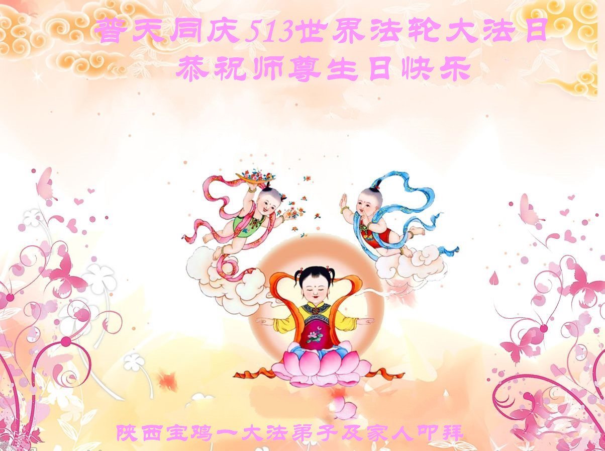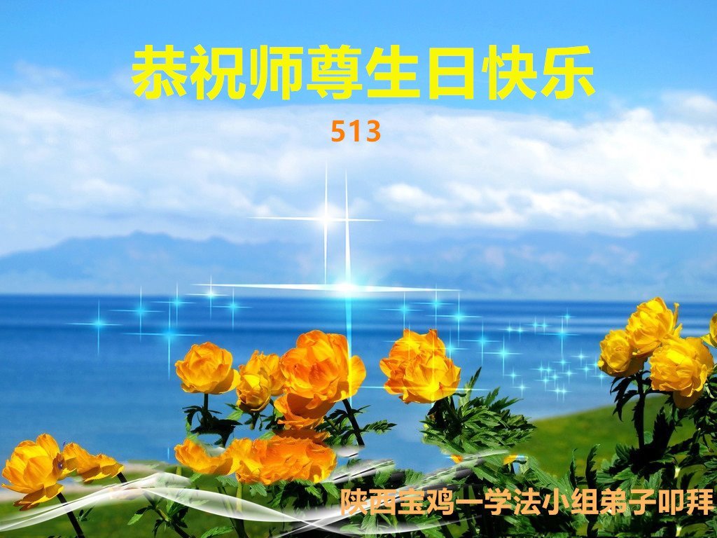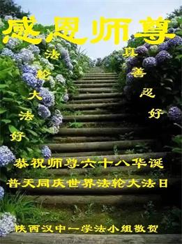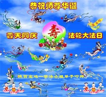 敬祝师尊生日快乐!师父您辛苦了! 陕西宝鸡市一学法小组大法弟子恭祝师尊生日快乐!普天同庆世界法轮大法日!