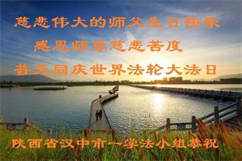 陕西榆林全体大法弟子恭祝慈悲伟大的师尊生日快乐!恭贺第二十届世界法轮大法日! 陕西省宝鸡市高新区大法弟子恭祝师父生日快乐!
