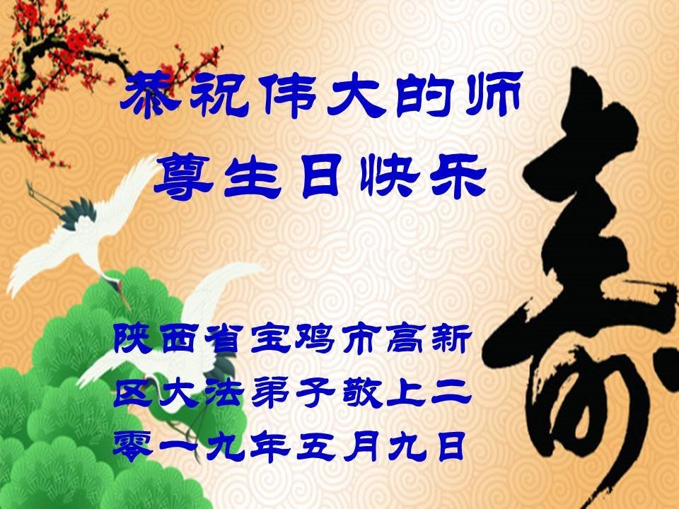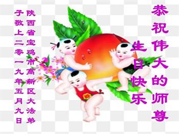 【明慧网二零一九年五月十一日】 陕西省宝鸡市高新区大法弟子恭祝师父生日快乐!
