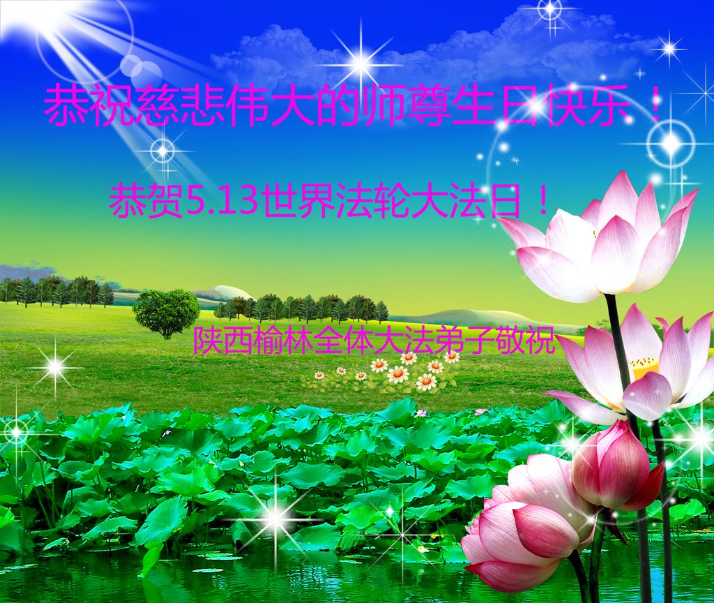 陕西省榆林市一大法弟子恭祝师尊生日快乐!庆祝世界法轮大法日! 陕西省榆林市全体大法弟子恭贺法轮大法日!