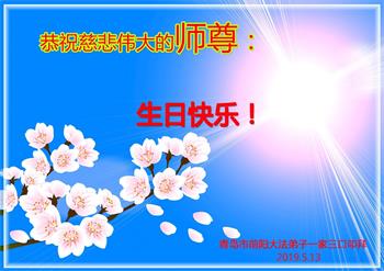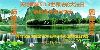 【明慧网二零一九年五月十一日】 山东省青岛学法小组全体大法弟子恭祝师尊生日快乐!普天同庆5.13世界法轮大法日!