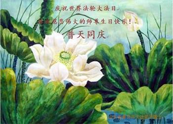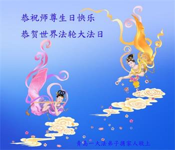 又一年世界法轮大法日即将来临,在这全宇宙欢庆的时刻,我们一家大法弟子恭祝师尊生日快乐!千言万语道不尽对师尊慈悲救度的感恩!弟子唯有精進,做好三件事,修好自己,让师父多一份欣慰,少一份操心。在此叩谢恩师!谢谢师父! 山东青岛大法弟子恭祝师尊生日快乐!