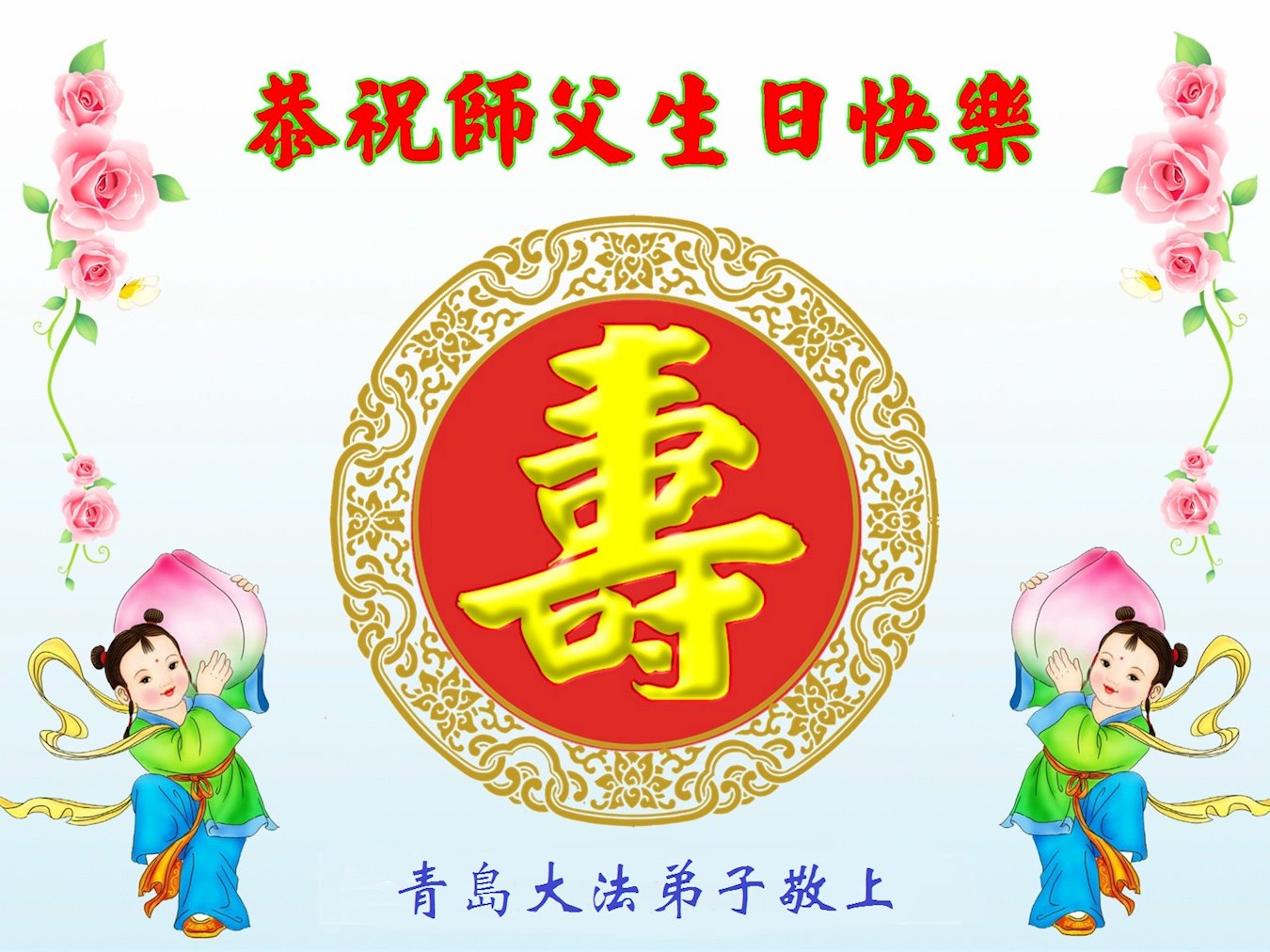 恭祝伟大的师尊生日快乐! 山东青岛大法弟子恭祝伟大的李洪志师尊生日快乐!