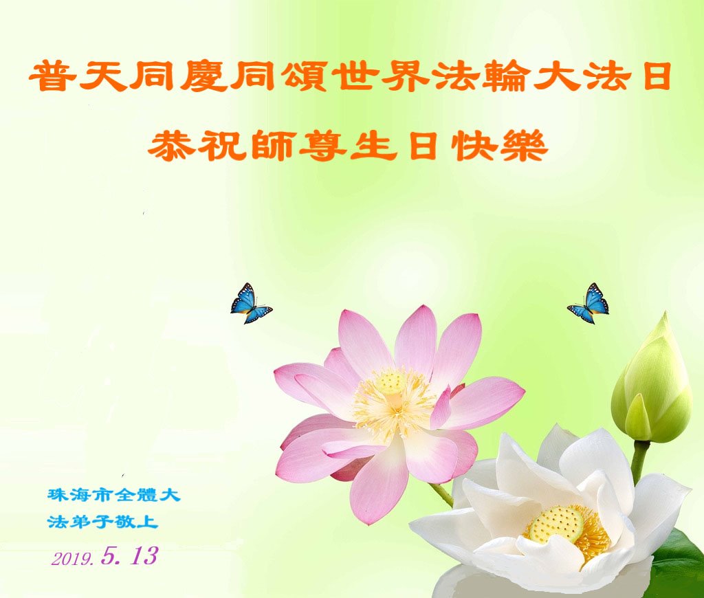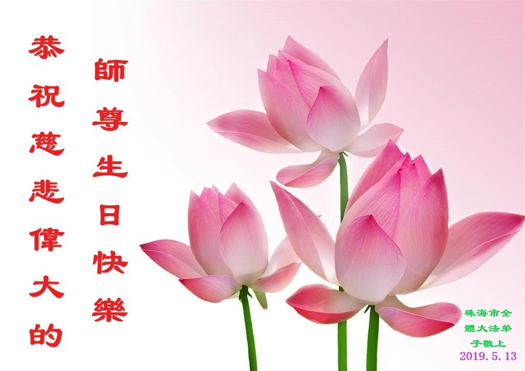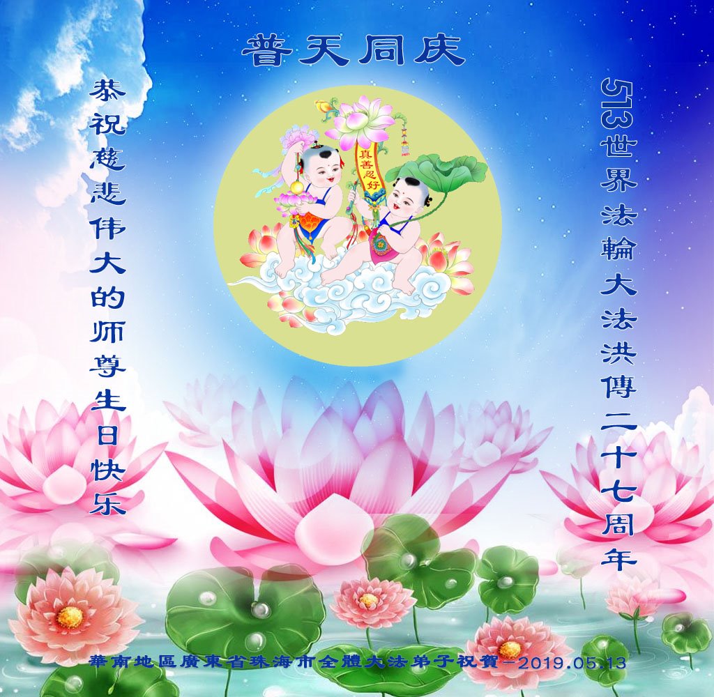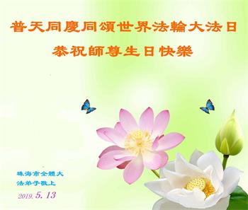 【明慧网二零一九年五月十一日】 广东省珠海全体大法弟子恭祝伟大师尊生日快乐!