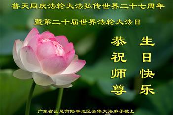 广东大法弟子恭祝伟大慈悲的师尊生日快乐!恭贺法轮大法日!