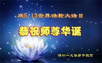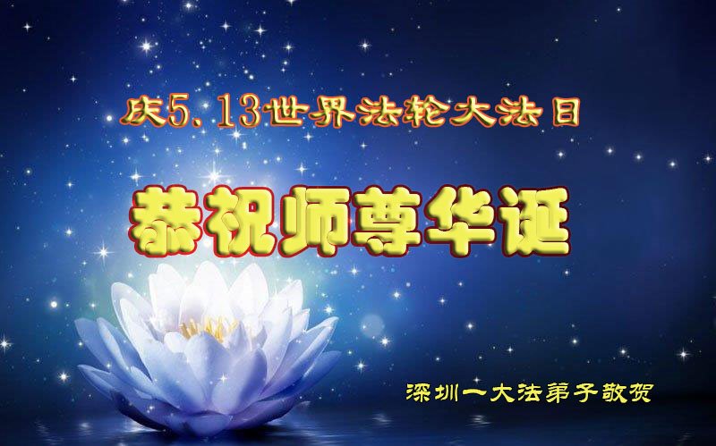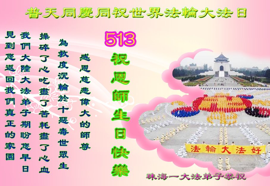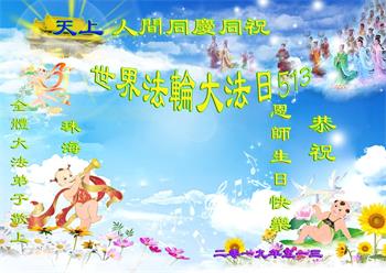 广东省大法弟子同庆同祝同颂五·一三世界大法日!恭祝恩师生日快乐!
