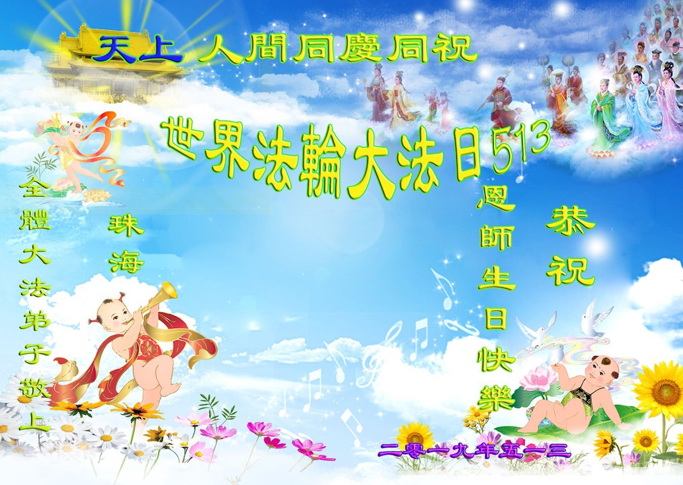 广东省珠海全体大法弟子恭祝慈悲伟大的师尊生日快乐!同庆同颂世界法轮大法日!