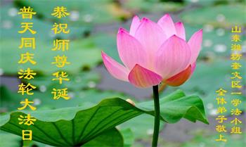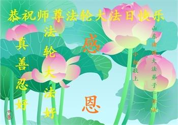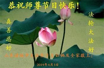山东潍坊临朐一姐妹俩大法弟子恭祝慈悲伟大的师尊生日快乐!恭贺世界法轮大法日! 山东潍坊临朐一夫妇大法弟子及儿子恭祝慈悲伟大的师尊生日快乐!恭贺世界法轮大法日!
