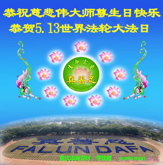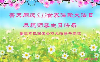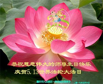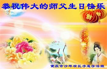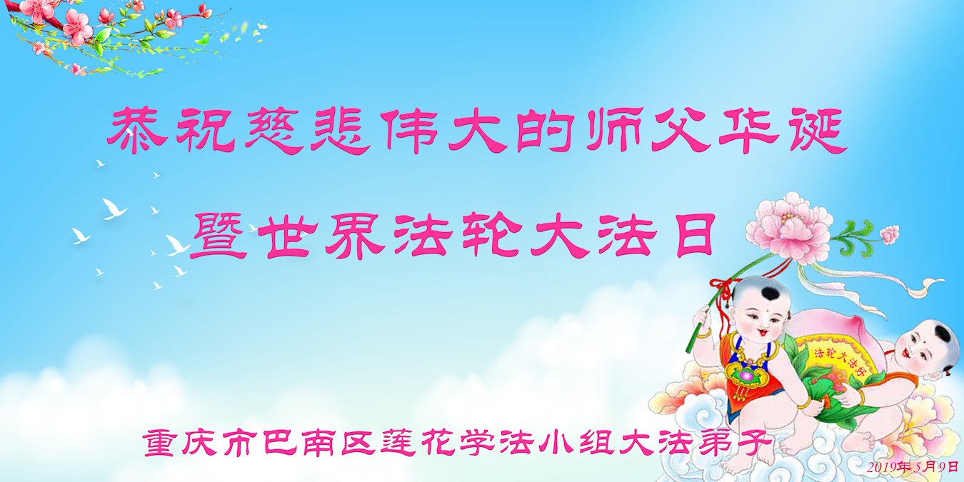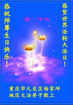 恭祝师尊生日快乐!恭贺世界法轮大法日! 感谢师尊的慈悲苦度! 重庆市九龙坡区杨家坪大法弟子敬上 重庆市巴南区全体大法弟子恭祝师父生日快乐!
