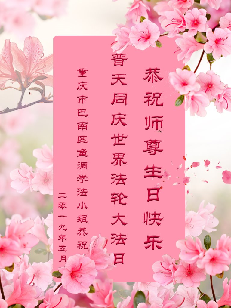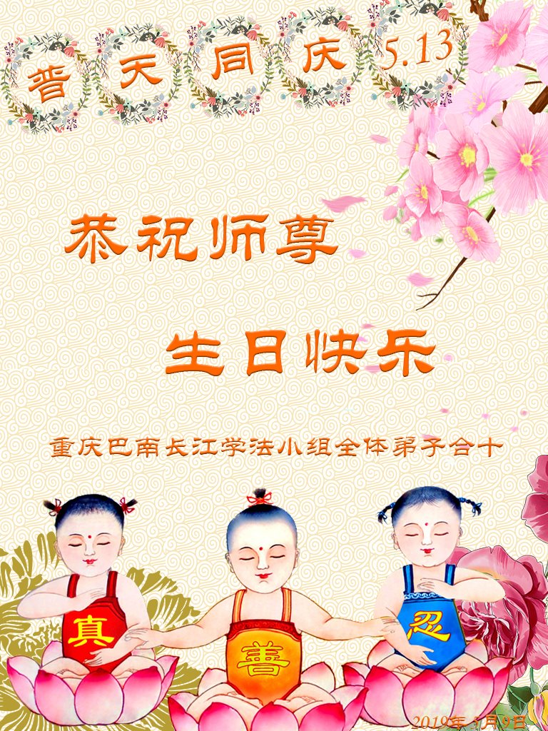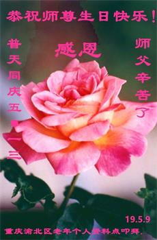【明慧网二零一九年五月十一日】 重庆渝北区老年个人资料点大法弟子恭祝慈悲伟大的师尊生日快乐!