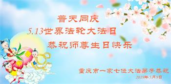 重庆市一家七位大法弟子恭祝师尊生日快乐!