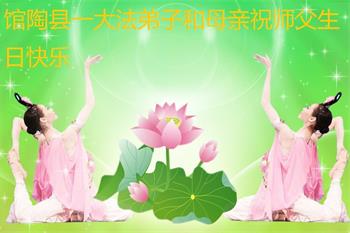 河北省邯郸市馆陶县一大法弟子和母亲祝师父生日快乐!感谢师父慈悲救度!师父辛苦了!