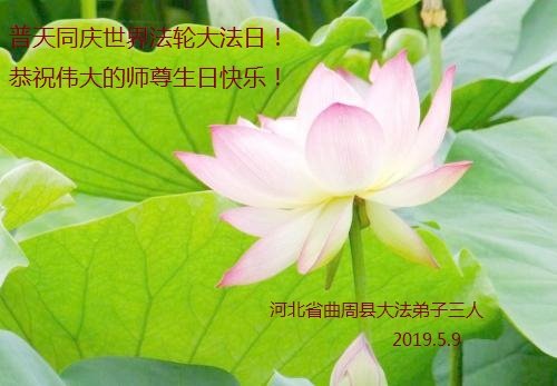 河北邯郸市曲周县三名大法弟子恭贺法轮大法日!