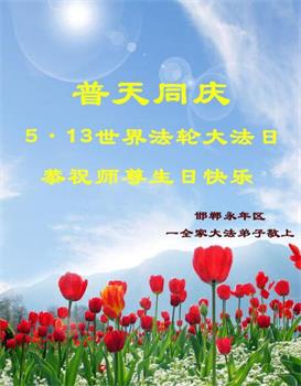 河北省邯郸永年区一全家大法弟子恭祝师尊生日快乐!师尊辛苦了!
