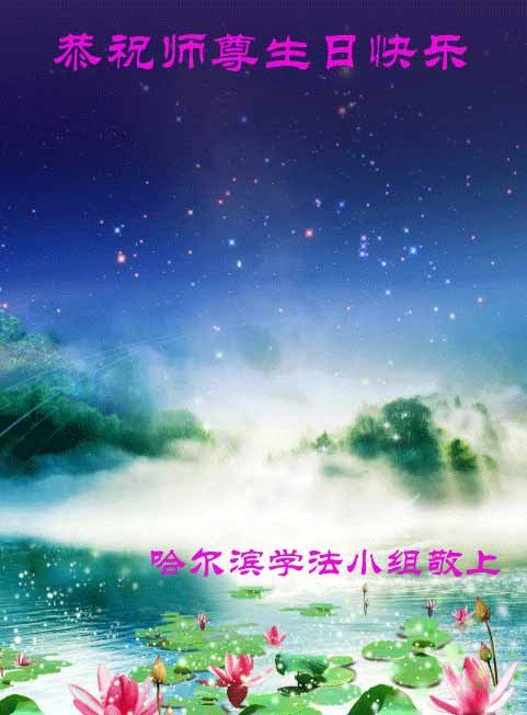 黑龙江省哈尔滨学法小组大法弟子恭祝师尊生日快乐!