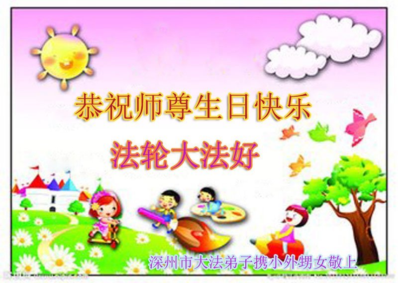 谢谢师父慈悲苦度,我和两个女儿都在大法中修炼,弟子每一步的提高都离不开师父和大法的加持。我们再一次祝师父生日快乐! 河北省邯郸市曲周县大法弟子恭祝师尊生日快乐!