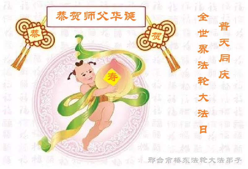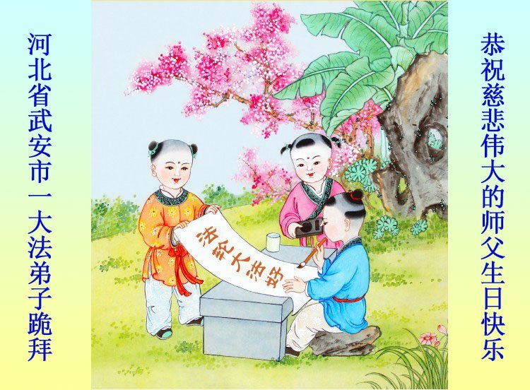 河北邢台市任县全体大法弟子恭贺世界法轮大法日!恭祝师父生日快乐!师父辛苦了!弟子一定在剩下的时间里做好三件事,不辜负师父的慈悲救度! 河北省衡水市深州市一大法弟子祝师尊生日快乐!