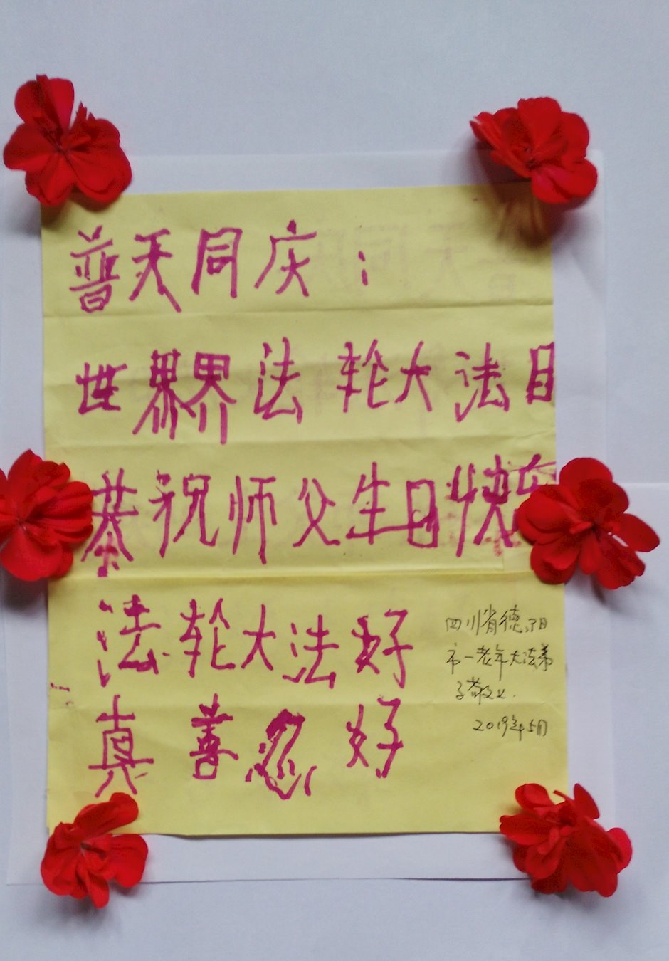四川广安一大法弟子恭贺法轮大法日!