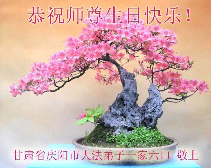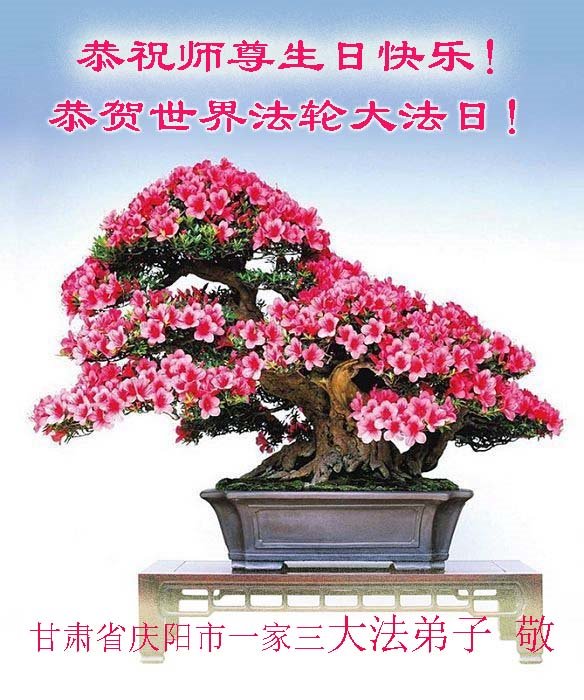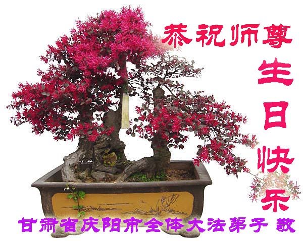 甘肃省庆阳市西峰区全体大法弟子恭祝师尊生日快乐!祝贺世界法轮大法日!