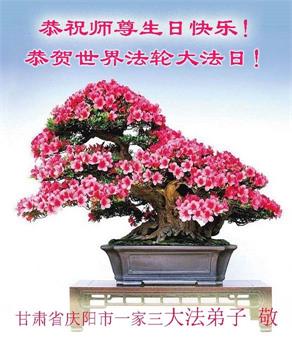甘肃省庆阳市一家三大法弟子恭祝师尊生日快乐!祝贺世界法轮大法日!