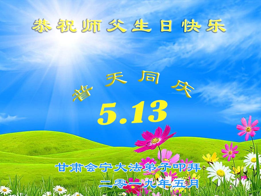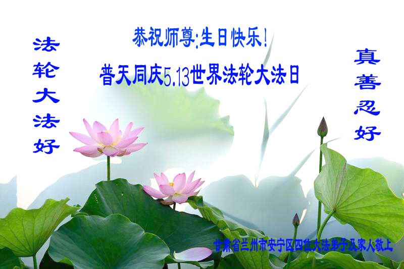 我们全体甘肃省陇西县大法弟子与全世界的大法弟子们共同庆祝5.13这个伟大日子的到来!我们在师尊慈悲保护下,有幸成为师尊的弟子万分荣幸。我们牢记来时的史前大愿,不畏艰难险阻,做好师尊告诉我们的三件事,讲清真相、修炼好自己,救度更多的在世众生。 甘肃省兰州市安宁区大法弟子恭贺法轮大法日!恭祝师尊生日快乐!