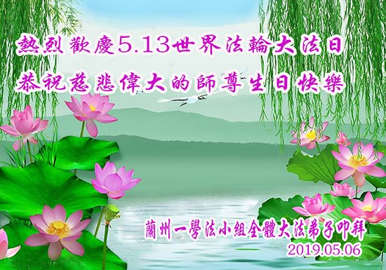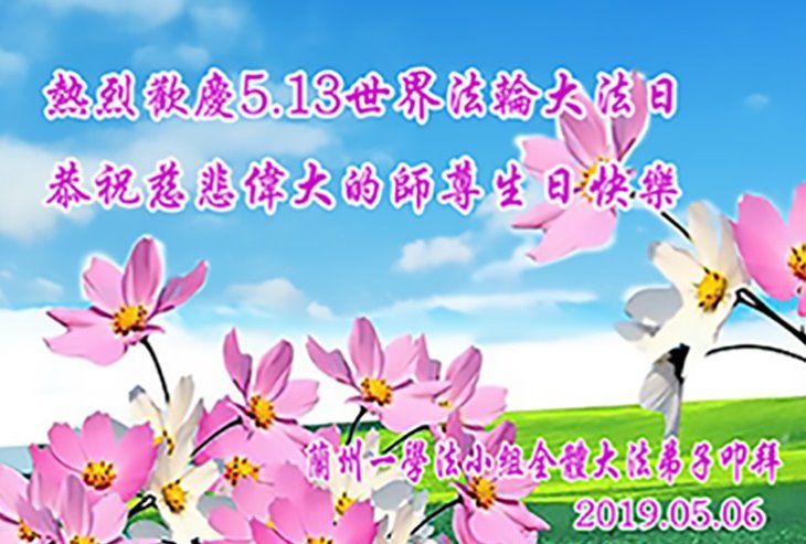 【明慧网二零一九年五月十二日】 甘肃省兰州市安宁区四位大法弟子及家人恭祝师尊生日快乐!普天同庆世界法轮大法日!