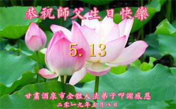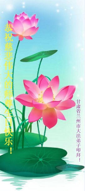 甘肃省兰州市大法弟子恭祝慈悲伟大的师尊生日快乐!