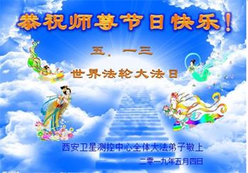【明慧网二零一九年五月十二日】 陕西省西安卫星测控中心全体大法弟子恭祝师尊节日快乐!