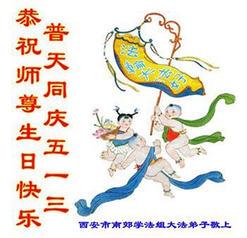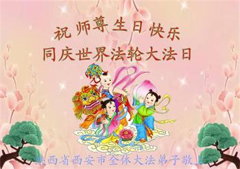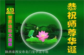 陕西省西安大法弟子恭祝师尊生日快乐!同庆世界法轮大法日!