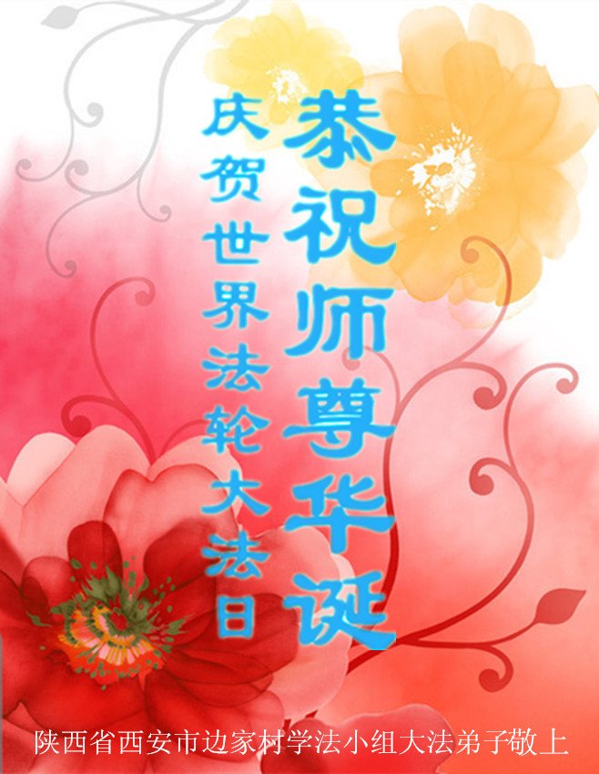 陕西省西安市边家村学法小组大法弟子恭祝师尊华诞!庆祝世界法轮大法日!